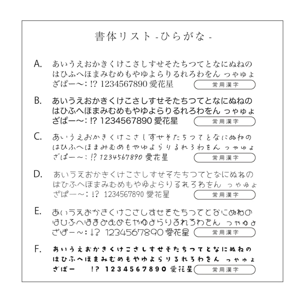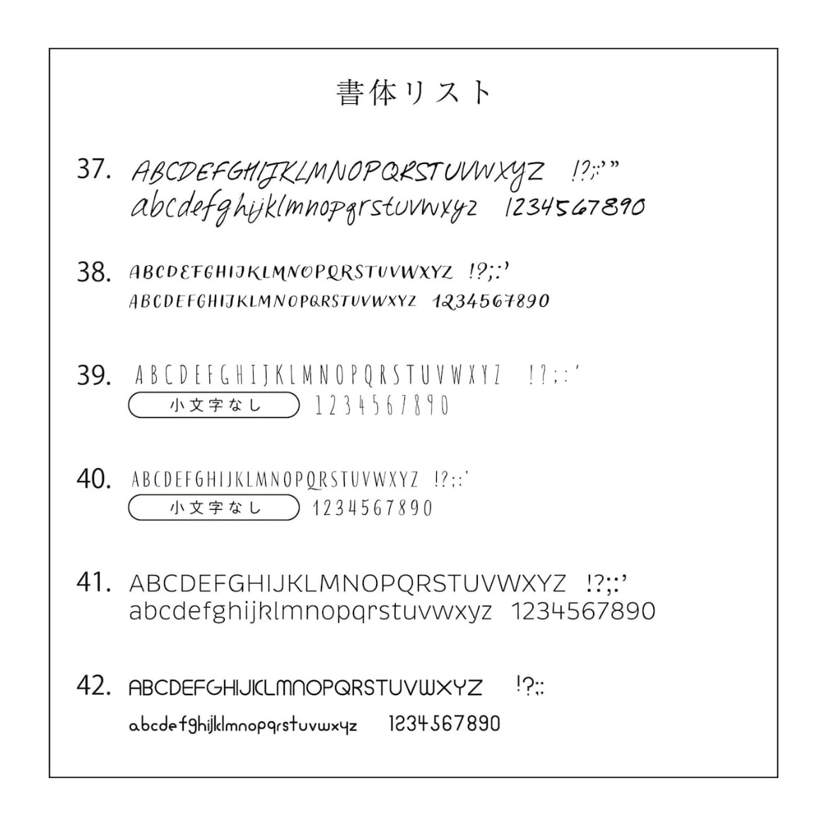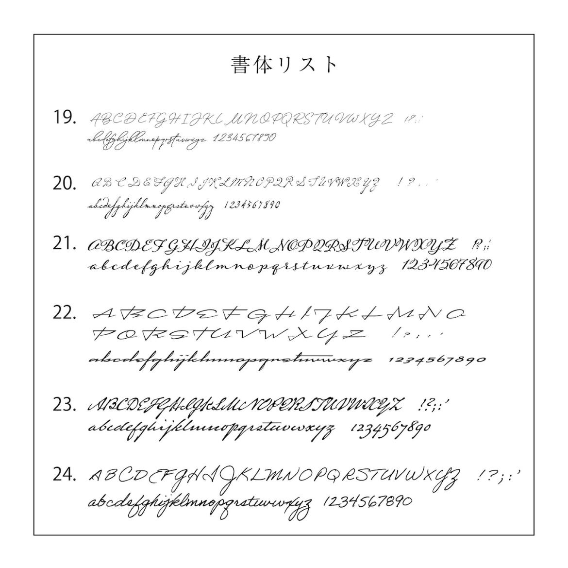 書体一覧をご確認頂き、ご希望の書体をお選びください。